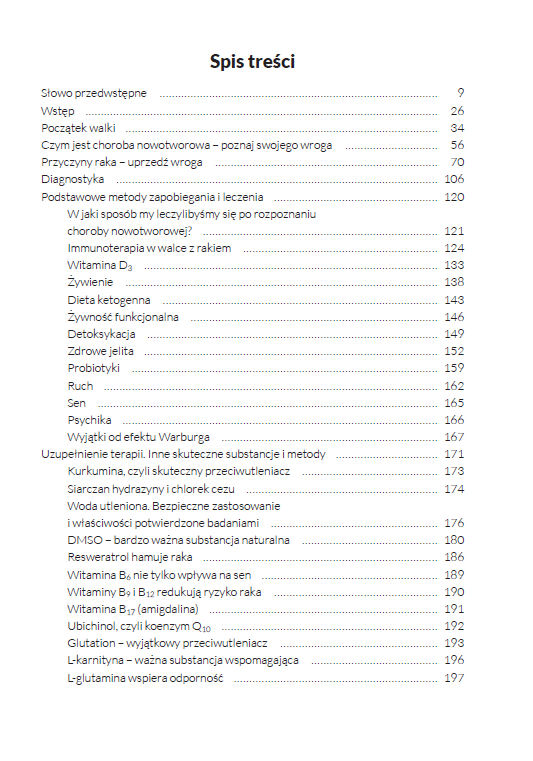 Treść książki ma charakter popularyzatorski i skierowana jest do osób poszukujących wiedzy na temat różnych sposobów radzenia sobie z chorobą nowotworową oraz możliwości wspierania organizmu w trakcie terapii.