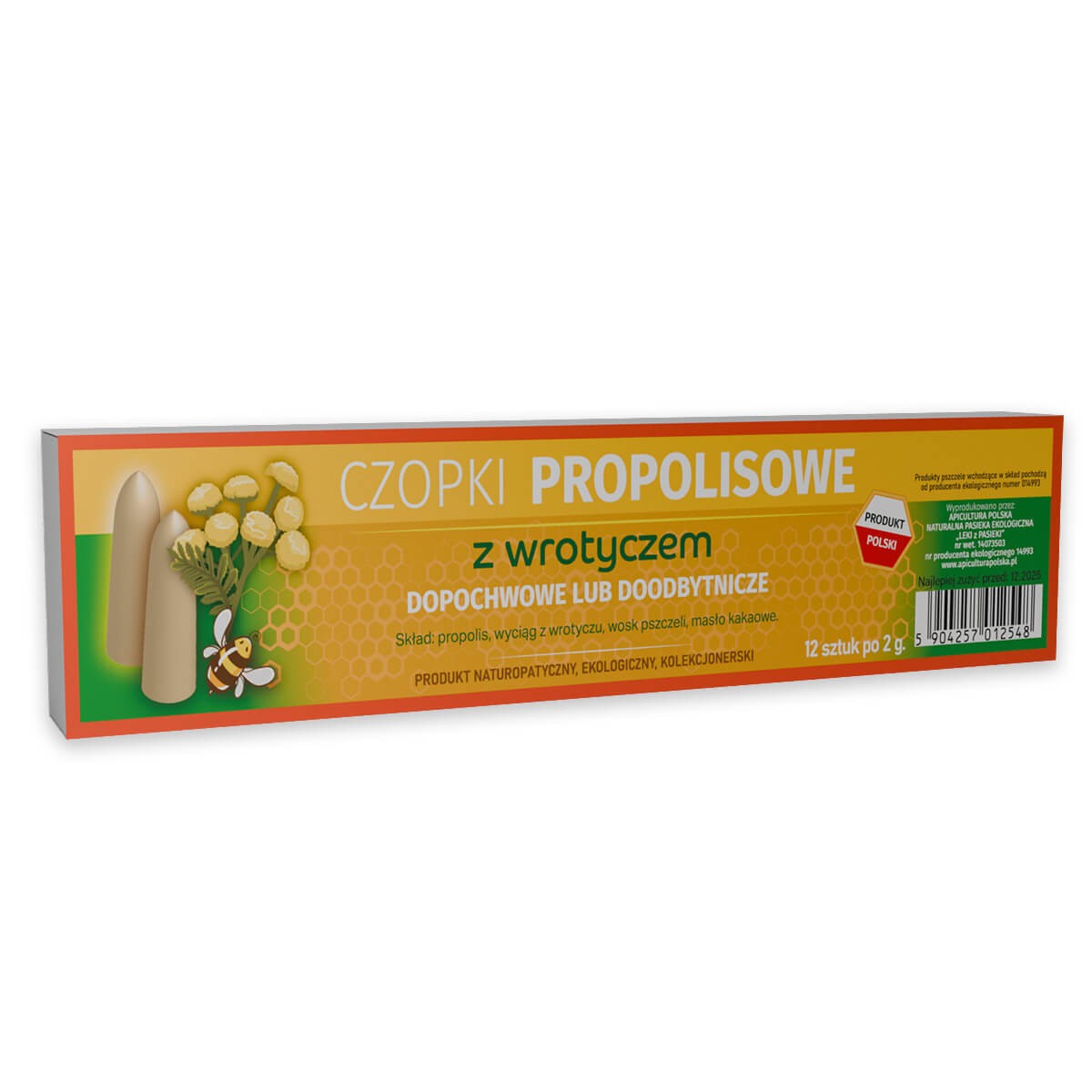 Składniki: propolis, wyciąg z wrotyczu, wosk pszczeli, masło kakaowe,