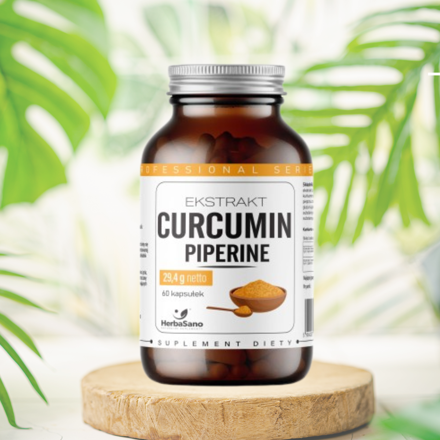 Składniki: ekstrakt z kłącza ostryżu długiego (w tym: 95% kurkuminoidów), ekstrakt z owoców pieprzu czarnego (w tym: 98% piperyny), substancja glazurująca: hydroxypropylometyloceluloza, substancja wypełniająca: celuloza mikrokrystaliczna, substancja przeciwzbrylająca: dwutlenek krzemu.