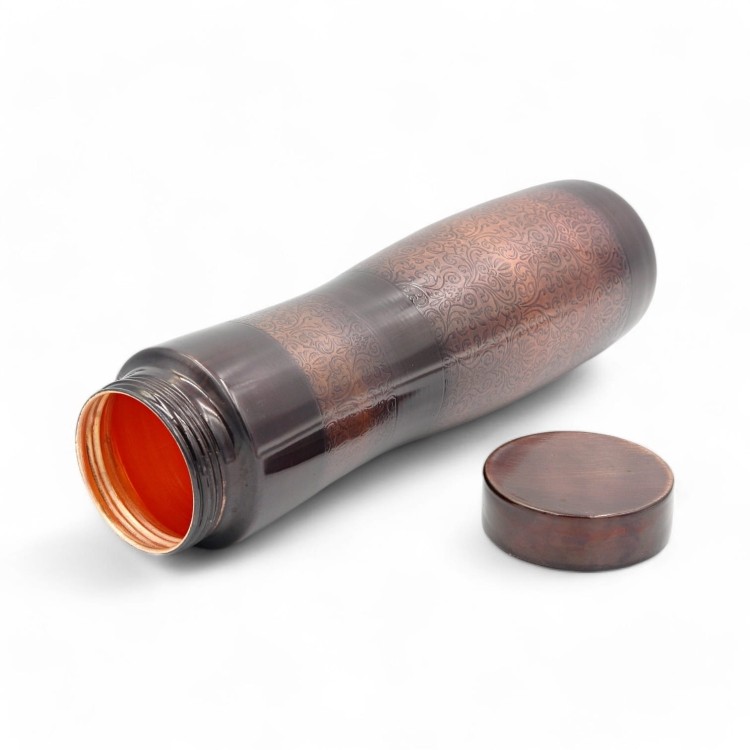 Praktyczna i szczelna butelka miedziana o pojemności 1000 ml, wykonana z najczystszej miedzi (99,96%), idealna do codziennego użytku i aktywności fizycznej, wspiera zdrowie i odporność.
