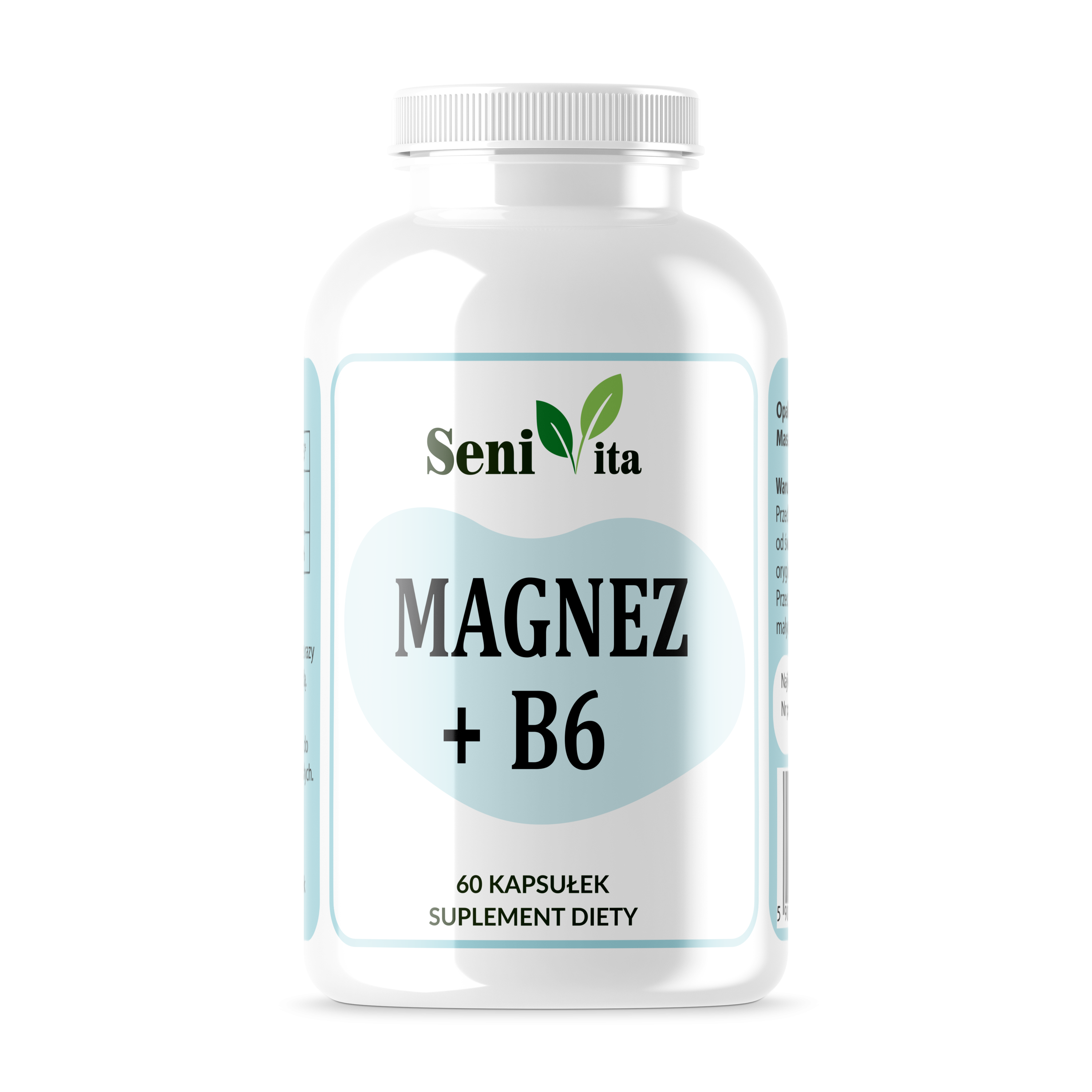 Cytrynian magnezu 1 397,2 mg (w tym 209,58 mg magnezu), 2,8 mg witaminy B6 w 2 kapsułkach.